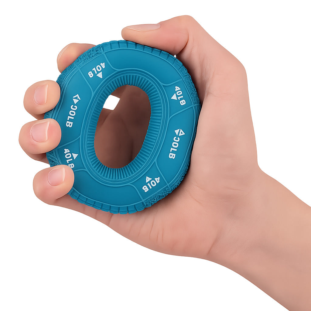 A palm and finger grip ring designed for isometric squeezing to strengthen your forearm and hand muscles. The durable rubber construction provides balanced resistance for muscle recovery, grip building, and arm stability.